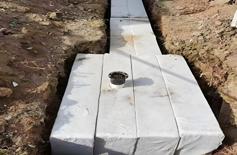 碳纖維雨水收集模塊一般采用塊狀,為了保持整體性,避免局部損壞,其塊狀外部封閉包裹有無紡布,在需要安裝位置挖設預埋坑,將一組多孔纖維棉放入預埋坑中,碳纖維雨水收集模塊中還設置有貫穿通孔,然后通過集雨管道伸入貫穿通孔中將所有碳纖維雨水收集模塊進行連接,伸入貫穿通孔部分的集雨管道圓周上設置有漏雨孔,當降雨條件下,雨水通過土地滲入碳纖維雨水收集模塊,同時,雨水經(jīng)過集雨管道并通過漏雨孔滲入碳纖維雨水收集模塊中,碳纖維雨水收集模塊將雨水吸收并且在非降雨條件下逐漸將吸收的雨水釋放至周圍土壤中,使得周圍土壤在非降雨時期也能夠保持一定的含水量,為土壤的水份保持提供技術支撐。